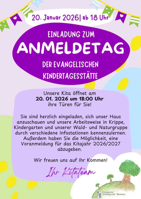 Bildungsarbeit in Krippe, Kindergarten und Waldgruppe zu informieren und auch schon eine Voranmeldung für das kommende Kitajahr abzugeben. Das Team wird einen informativen kurzweiligen Nachmittag